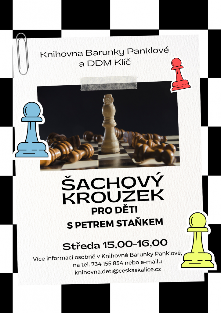 Ve středu 2.11.2022 proběhne první schůzka malých šachistů v Knihovně Barunky Panklové. Začátek v 15 hodin.